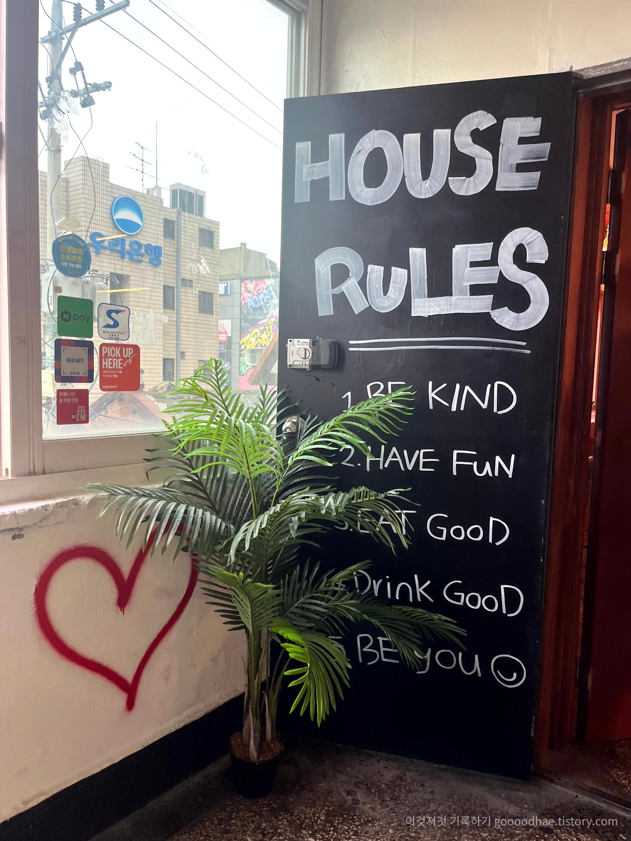 문에 적혀있는 하우스 룰 귀엽노 ㅋㅋ